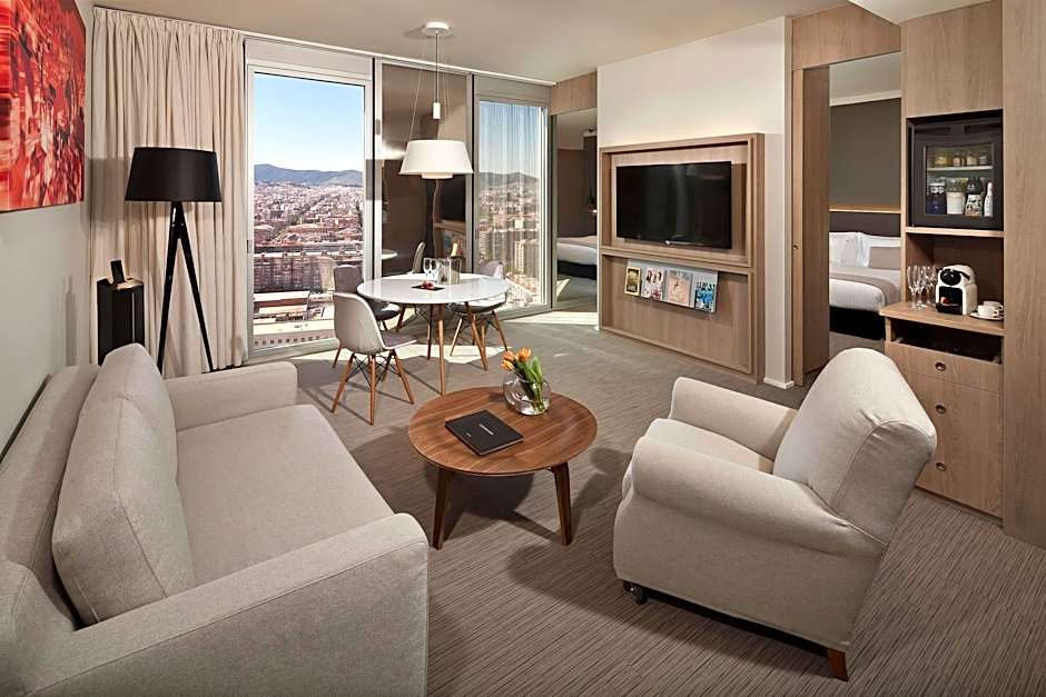 Located on the top floors of the hotel, this modern, air-conditioned junior suite features fantastic views over Barcelona's skyline.