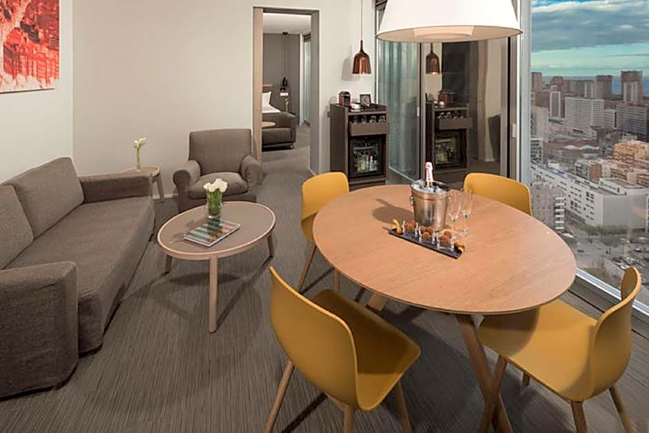 Located on 23th floor, this 1-bedroom suite comes with a separate lounge area with a 55-inch satellite TV, a mini-bar and a Nespresso Coffee Maker. The 2 bathrooms have a rain-effect shower, 2 sinks and Loewe amenities. This suite also includes: